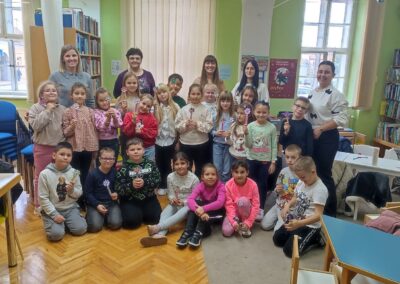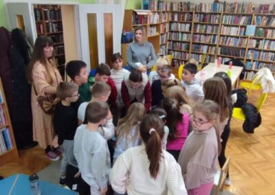 U utorak 11. studenog, po završetku Mjeseca hrvatske knjige, učenici 1. i 2. razreda posjetili su Gradsku knjižnicu u Županji pod vodstvom učiteljica Ivane Ivkić Škalic i Josipe Antunović te knjižničarke Maje Pavičić. Na Dječjem odjelu dočekala ih je knjižničarka Marina, učenici su poslušali zanimljivu priču o knjižnici i izradili straničnike koje su ponijeli kući. Na odlasku su obišli preostale odjele.