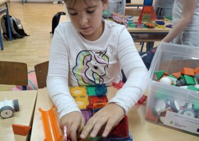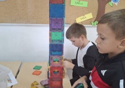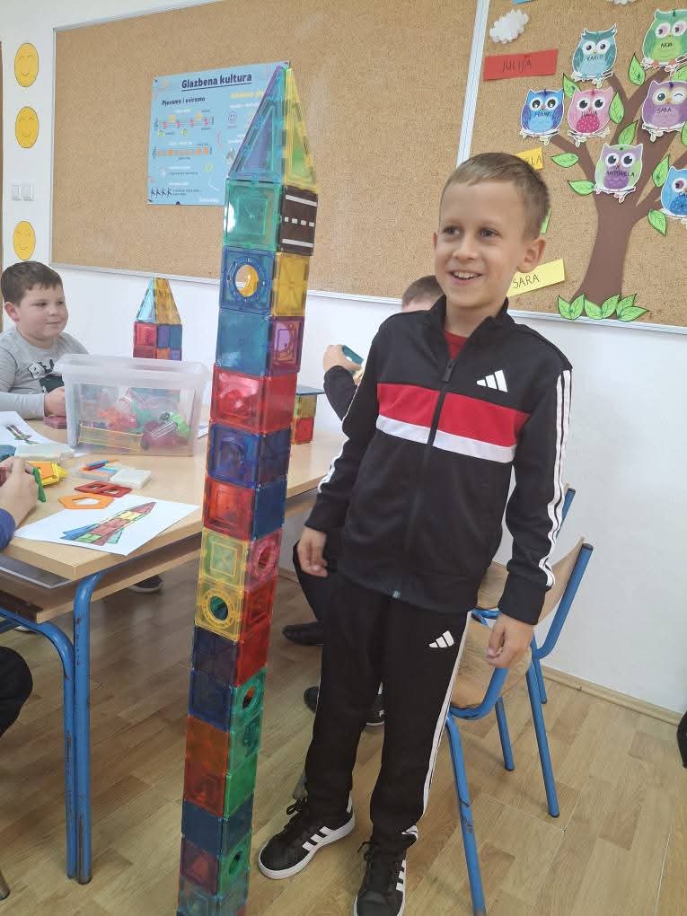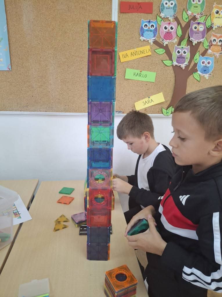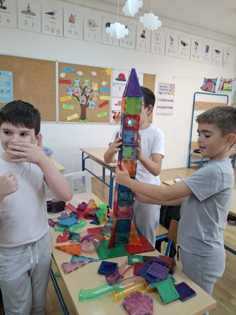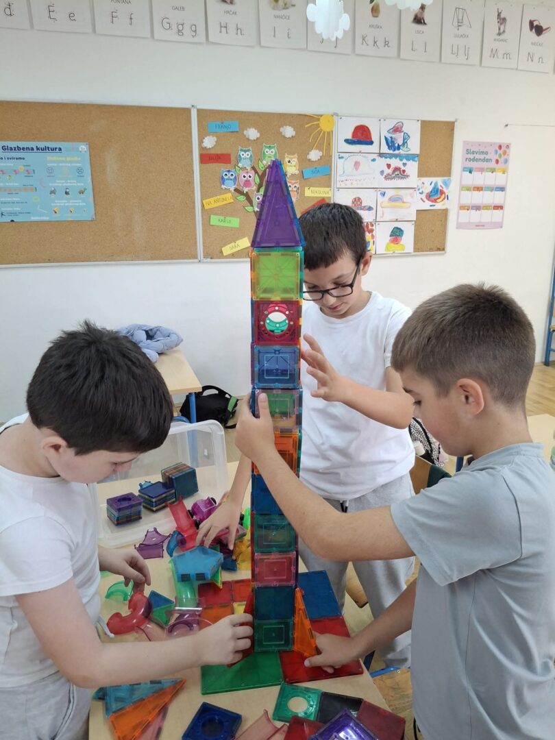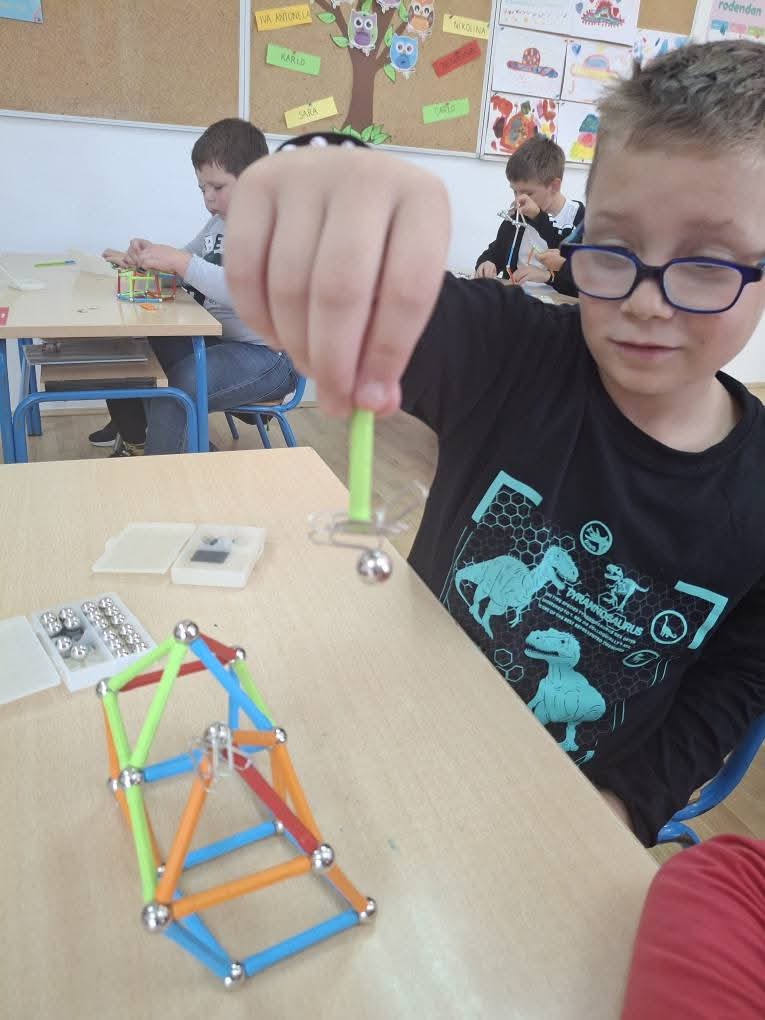 Kroz igre s magnetnim konstruktorima, učenici su izrađivali rakete, robote te rješavali izazove u magnetnim labirintima. Kroz ovu radionicu, učenici su se upoznali s pojmom magnetske sile – naučili su kako magnetska sila može privući i odbiti predmete te su stekli praktično iskustvo u korištenju magnetskih materijala. Radionica je bila odlična prilika za razvijanje kreativnosti, ali i preciznosti, jer su učenici morali kontrolirati magnetsku silu pri rješavanju labirinta.